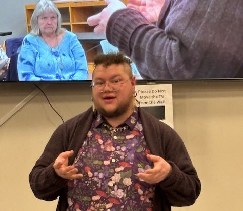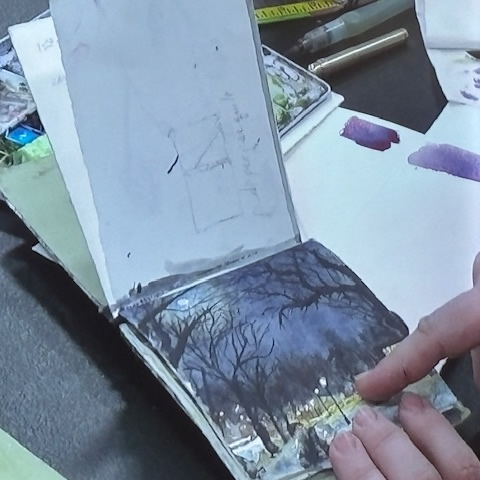 Seth Brauchler was our featured demonstator at our March meeting. He is a watercolor painter and book binder exploring our relationships with abandoned and liminal spaces. He takes breaks from lurking under bridges with his paint tin to make jewelry, journals, patches and prints. Seth showed the group many tips he has developed to aid his watercolor painting and why it is important to use quality paper and paint.