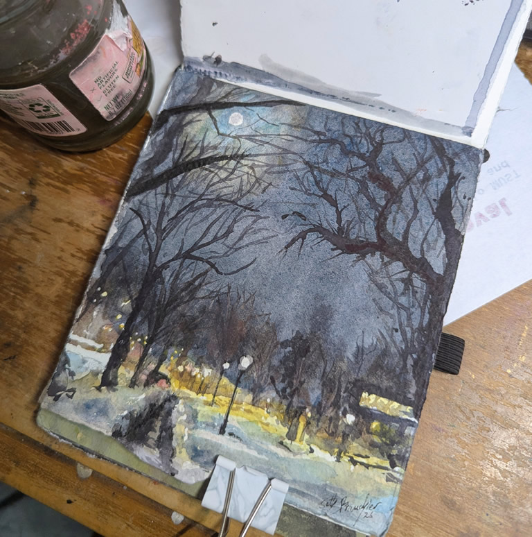 Seth Brauchler will be our featured demonstator. He is a watercolor painter and book binder exploring our relationships with abandoned and liminal spaces. He takes breaks from lurking under bridges with his paint tin to make jewelry, journals, patches and prints.