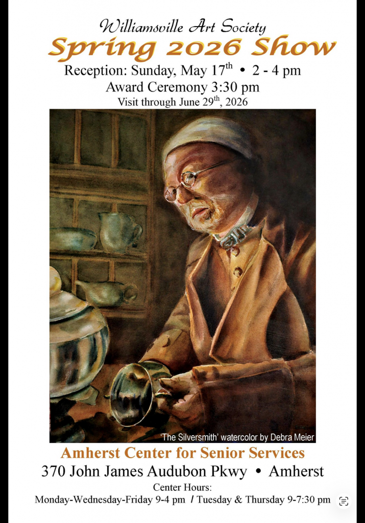 Area artists, and those who appreciate art, are welcome to join the Williamsville Art Society. There are no residency requirements. A Basic Membership is $40.00 per year payable by September 30th.